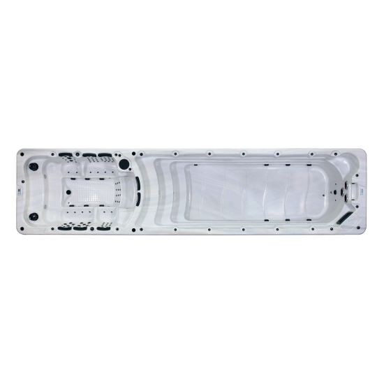 Плавательный спа-бассейн Gulfstream Frigate — это ваш личный спа-центр для занятия плаванием или вечеринки, который можно удобно разместить во дворе или саду. Его длина 890 см, ширина 220 см и глубина 148 см, и имеет раздельные спа-зону и зону для плавания. Плавательная зона оснащена тремя профессиональными форсунками противотока, с одним насосом на каждую форсунку. Мощность потока каждой плавательной форсунки и ее направление можно настраивать индивидуально для любителя или профессионала. Глубина спа-бассейна составляет 148 см — это один из самых глубоких портативных бассейнов для плавания. Спа-зона рассчитана на 10 человек, с 3 парами удобных сидений.